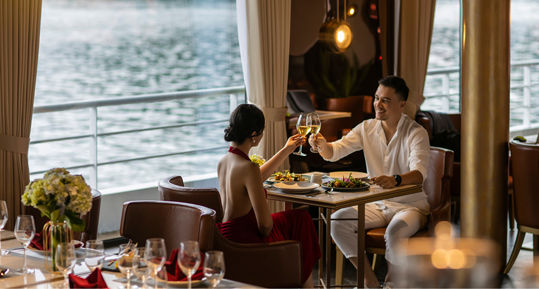 Dining on board follows the rhythm of the river, where every outlet is designed to keep the water close.